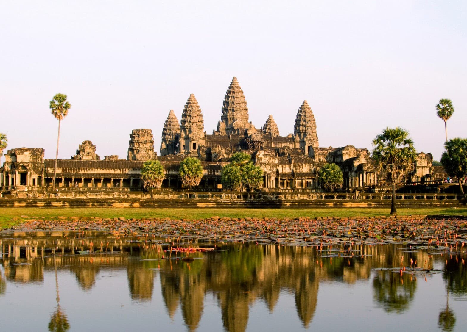 Desayuno. Las visitas se inician en el Templo de Ta Prohm, caracterizado por sus enormes árboles con raíces gruesas que enredan sus paredes. A continuación, visitaremos una de las joyas de Camboya, el impresionante Angkor Thom, “la Gran Ciudad”. El recorrido incluye algunos de los mejores templos del Rey Jayavarman VII, que gobernó desde 1181 hasta 1220. En la puerta sur de Angkor Thom podremos ver una imponente estatua de Avalokiteshvara, que aparece en la película de Tomb Raider. Asimismo, podremos ver el templo de Bayon, construido a finales del siglo XII, y que está adornado con cientos de rostros esculpidos en piedra. Continuaremos por la Terraza de los Elefantes, la Terraza del Rey Leproso y las 12 torres idénticas de Prasat Suor Prat. No nos podremos perder los templos de Baphuon, Phimeanakas, Khleang. Por la tarde disfrutaremos de Angkor Wat, considerado como una de las obras maestras de la arquitectura de todos los tiempos. Fue construido por el rey Suyavarman y está dedicado al dios hindú Vishnú. Se encuentra rodeado por un foso gigante y contiene cientos de adornos y relieves que cubren las paredes. Desde lo más alto se puede observar la impresionante selva. Alojamiento.
